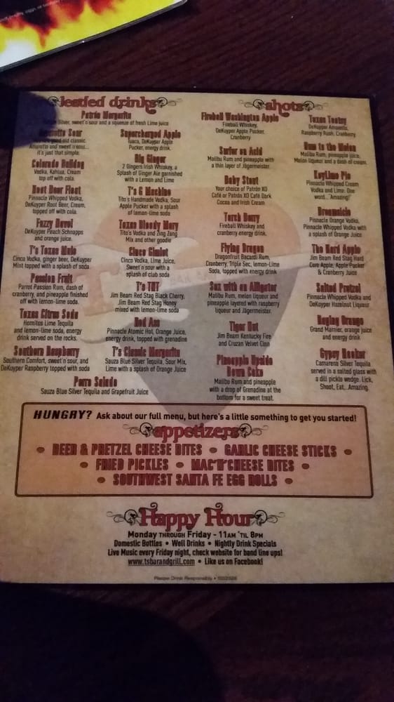 Step into T's Bar And Grill for a lively experience in Lewisville, TX. This music venue offers a casual setting with outdoor seating, live music, and a pool table. Known for their friendly staff and welcoming atmosphere, T's has become a local favorite. Customers rave about the delicious smash burger and reasonably priced drinks. The karaoke nights are a hidden gem, with a talented MC and a fun-filled atmosphere. Whether you're looking for a place to hang out with friends, enjoy live music, or grab a bite to eat, T's Bar And Grill has it all. Come for the food, stay for the friendly vibe and great entertainment. Experience T's and make it your go-to spot for a good time.